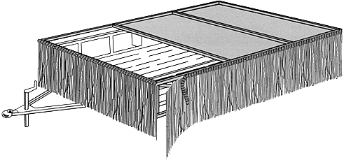 The above sketch uses a longer fringe-skirt instead of a floral sheeting product. This skirt is approximately 30″ tall and is designed to give the float a taller “floating” appearance. Many float builders like to use our fringe-panels because of the ease of decorating.