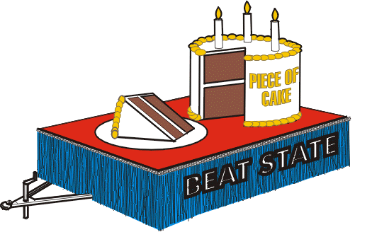 Step 2- Decorating the float: Deck and side skirts: Calculate the floral sheeting requirements in square yards by multiplying the length times the width of each differently colored area, (floral Sheeting comes 36″ wide by 10 or 25 yard lengths). See this Float Decorating Products Page for more information on float decorating supplies. Cut the floral sheeting as needed and attach to the bottom of the skirt and staple to the deck of the trailer